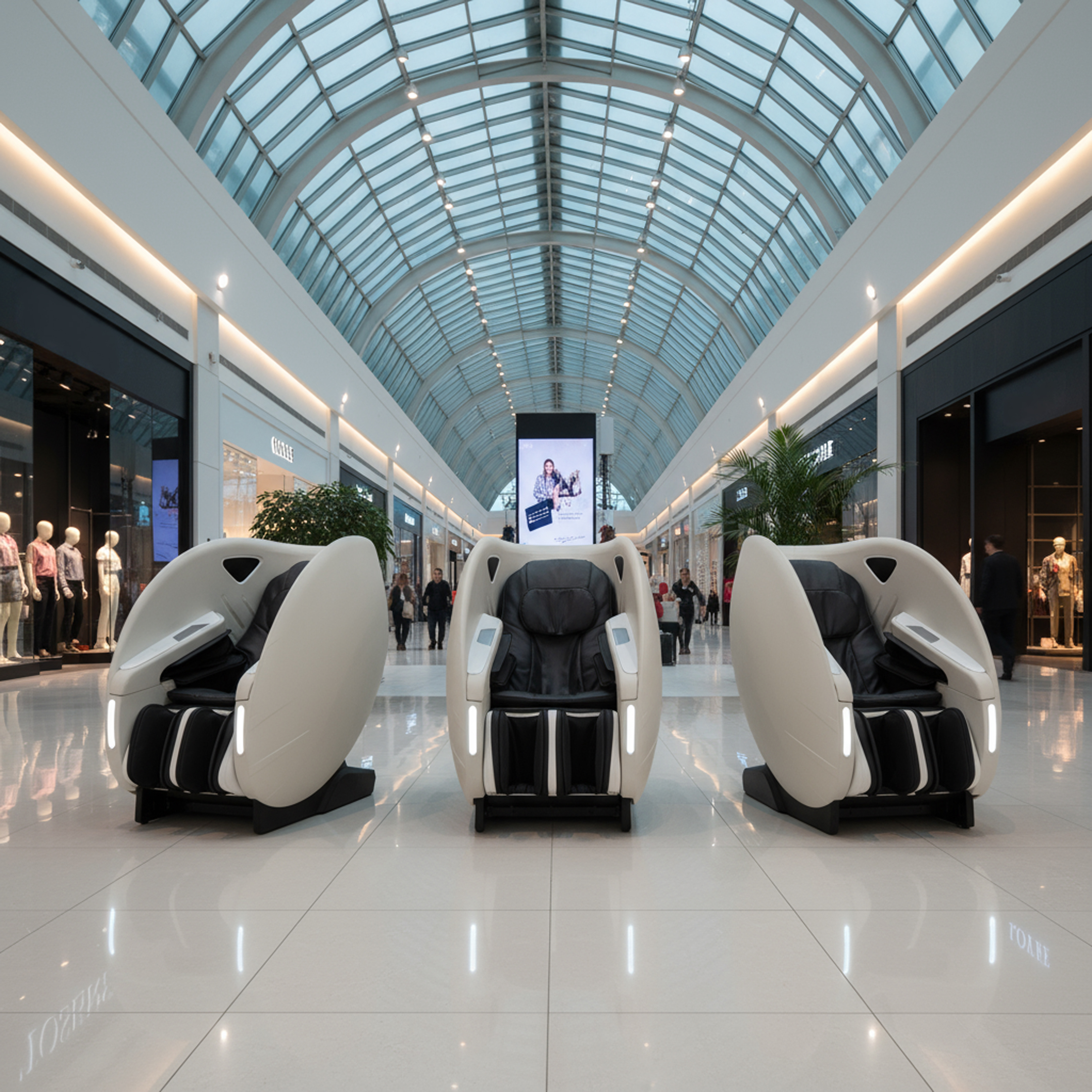 Elevate your venue with the sleek token-operated massage chairs, offering a luxurious, modern relaxation experience that enhances visitor satisfaction and increases dwell time.
